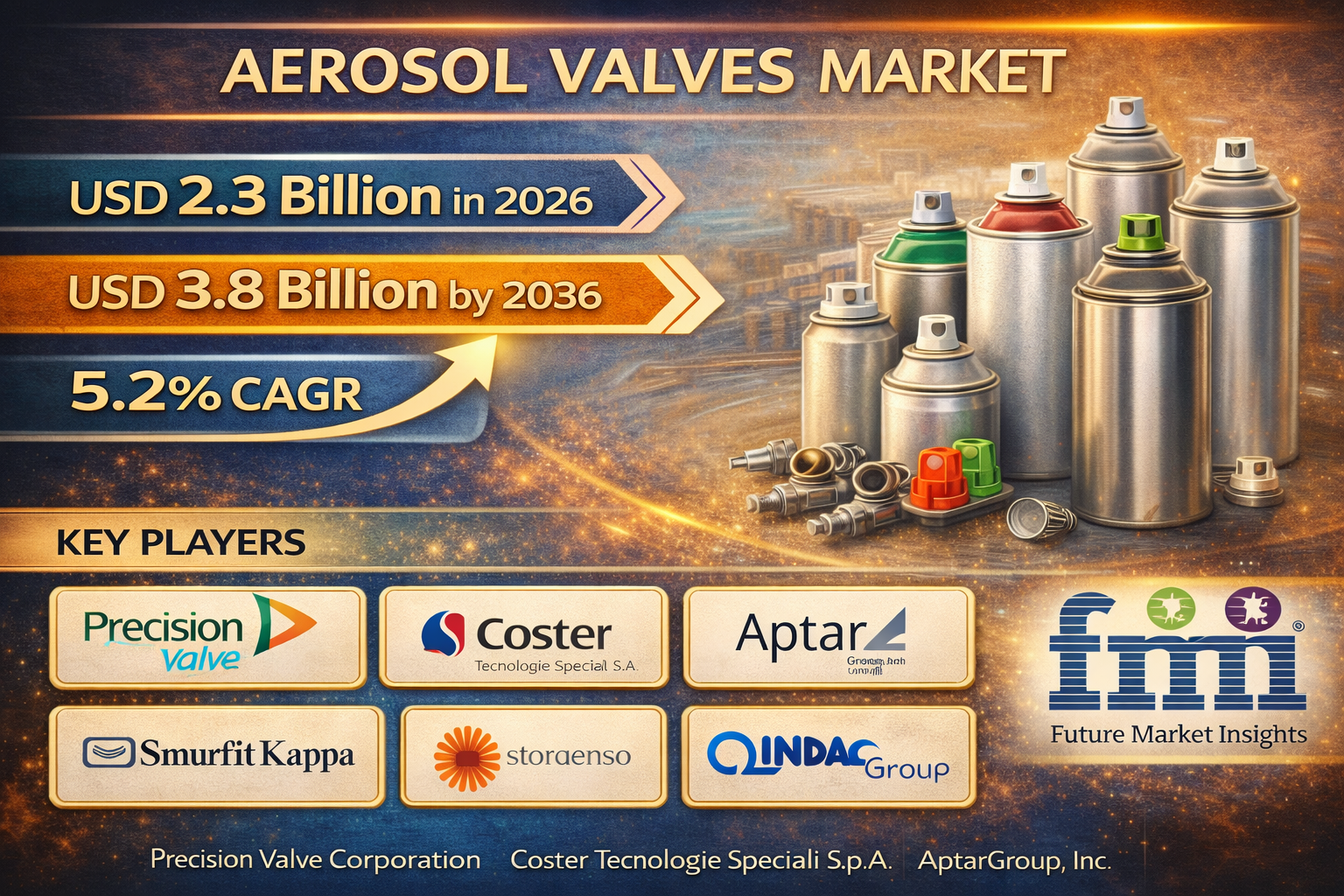 The global aerosol valves market is projected to grow from USD 2.3 billion in 2026 to USD 3.8 billion by 2036, registering a steady 5.2% CAGR. Market expansion is primarily driven by the transition from hydrocarbon propellants to compressed-gas systems and increasing adoption of precision dispensing technologies across pharmaceutical and premium personal care applications. Manufacturing footprints are also undergoing geographic diversification. Leading producers are expanding facilities closer to filling operations to reduce supply-chain risk and logistics costs. For instance, LINDAL Group expanded its European capacity with a new plant in Wismar, Germany, while Coster Group and Summit Packaging Systems strengthened operations in Brazil and Mexico respectively. Simultaneously, tightening global environmental regulations—including PFAS restrictions and volatile organic compound (VOC) controls—are compelling manufacturers to redesign sealing materials and valve components.