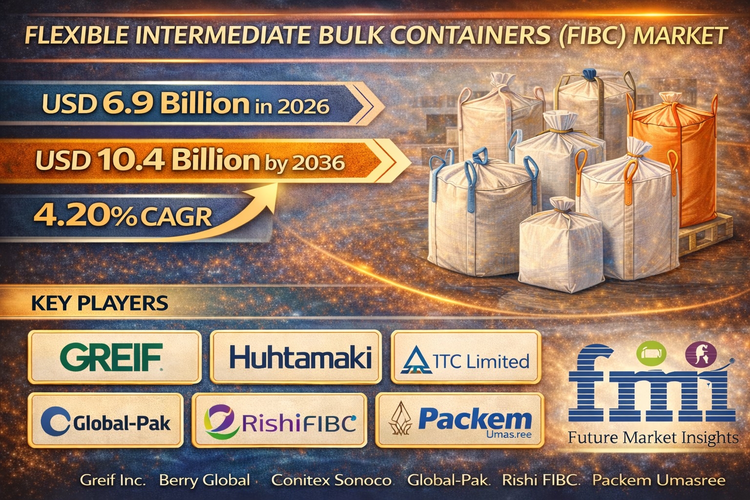The Flexible Intermediate Bulk Containers (FIBC) market comprises the global manufacturing and trade of large woven industrial bulk bags used to transport dry, flowable materials.