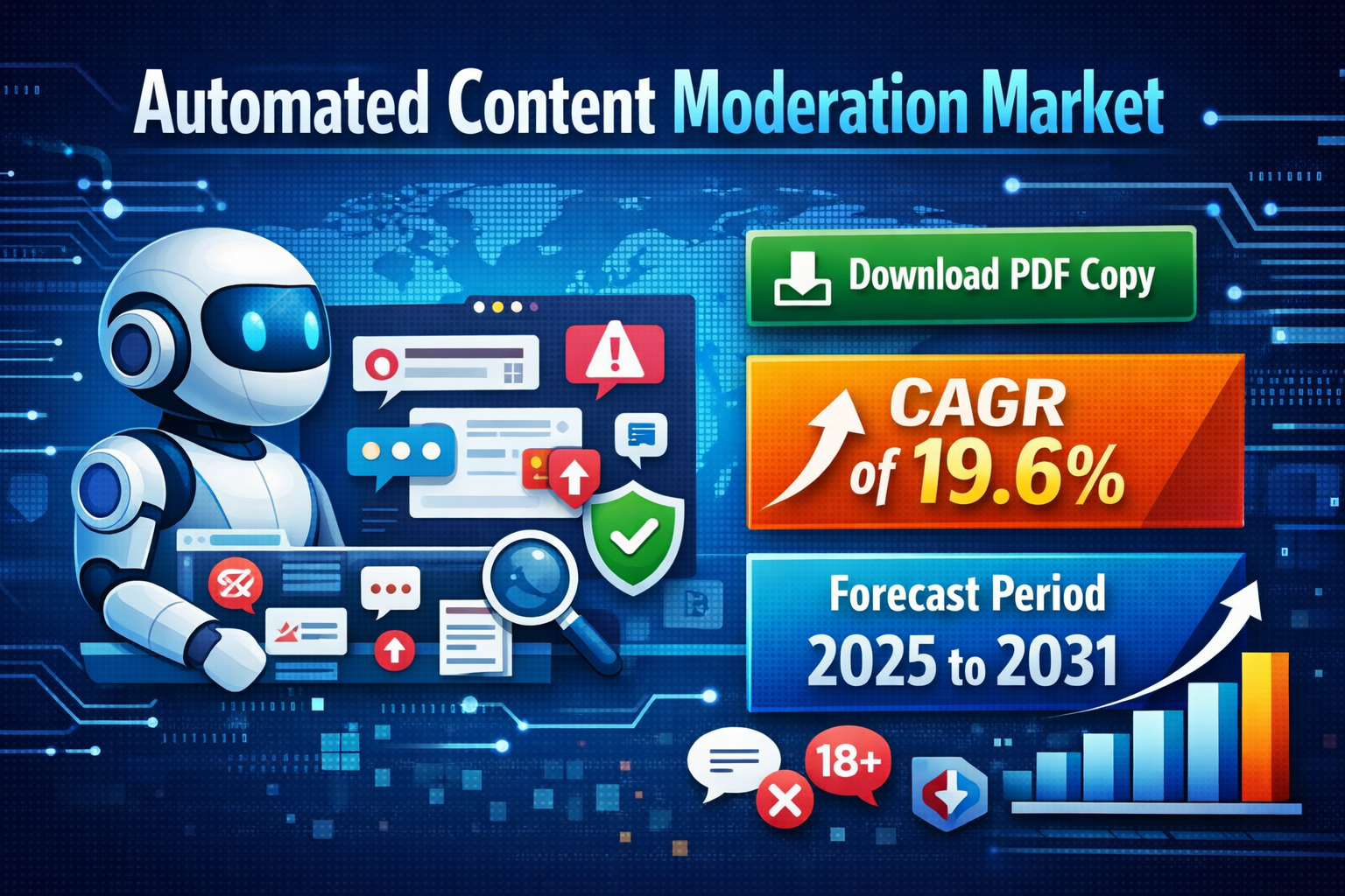 According to the latest market research, the global automated content moderation market is expected to grow at a CAGR of approximately 19.6% from 2025 to 2031. This growth is attributed to several factors, including: