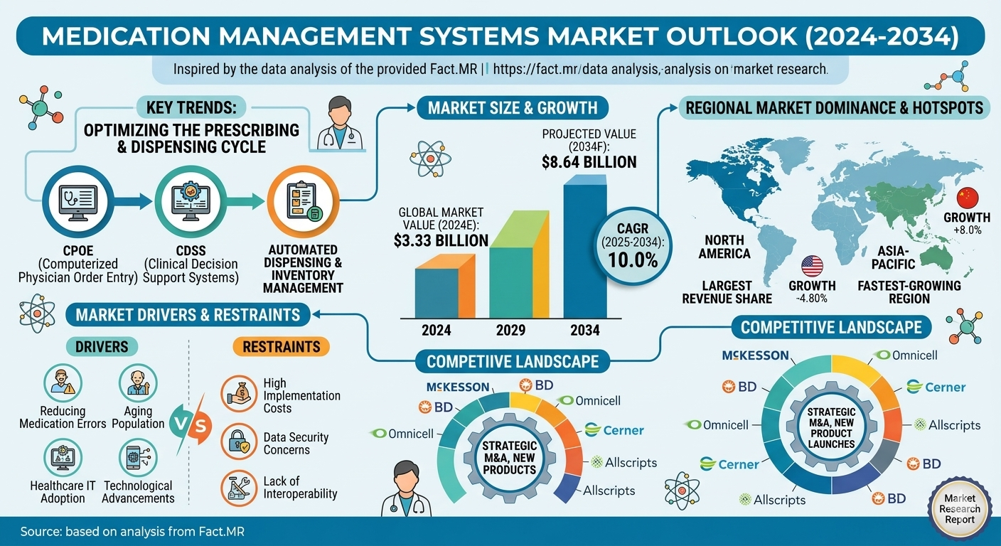 The global medication management systems market is on a high-growth trajectory, projected to soar from USD 3.9 billion in 2025 to USD 10.1 billion by 2035. According to a comprehensive industry analysis by Fact.MR, the market will expand at a double-digit compound annual growth rate (CAGR) of 10.0% over the next decade. This surge is primarily fueled by a global push to eliminate medication errors, the rapid digitalization of hospital workflows, and the integration of artificial intelligence (AI) into clinical decision-making.