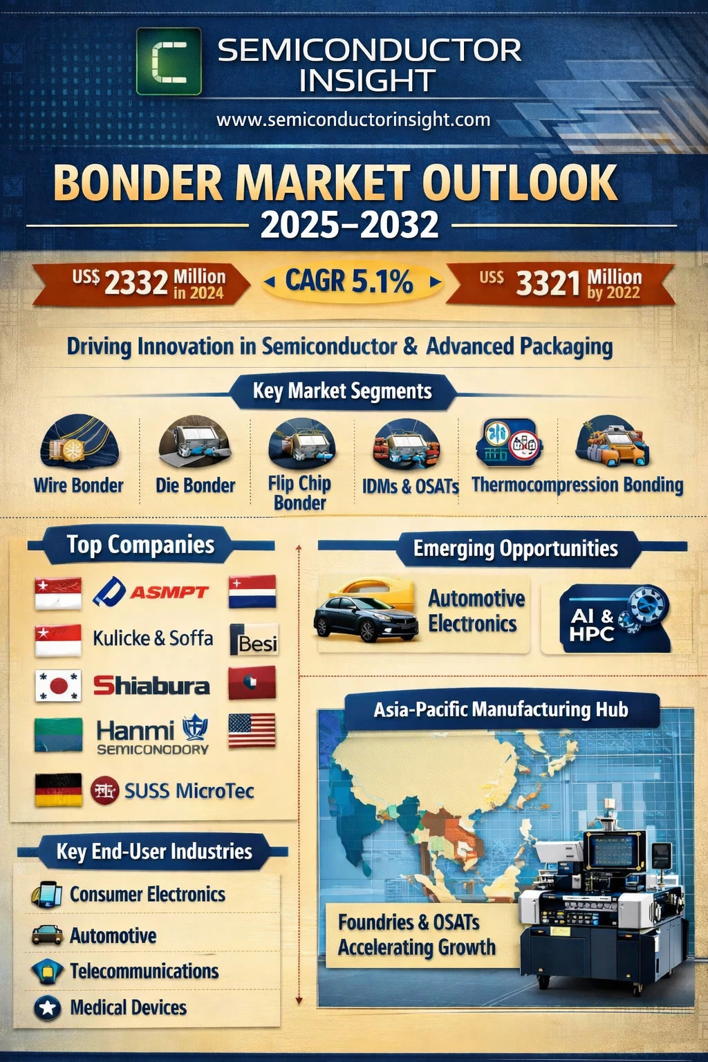 Bonder Market, valued at a robust US$ 2332 million in 2024, is on a steady growth trajectory, projected to reach US$ 3321 million by 2032. This expansion, representing a compound annual growth rate (CAGR) of 5.1%, is detailed in a comprehensive new report published by Semiconductor Insight. The study underscores the indispensable role of these precision assembly systems in enabling the miniaturization and performance enhancements critical to modern electronics, particularly within the semiconductor and advanced packaging sectors.