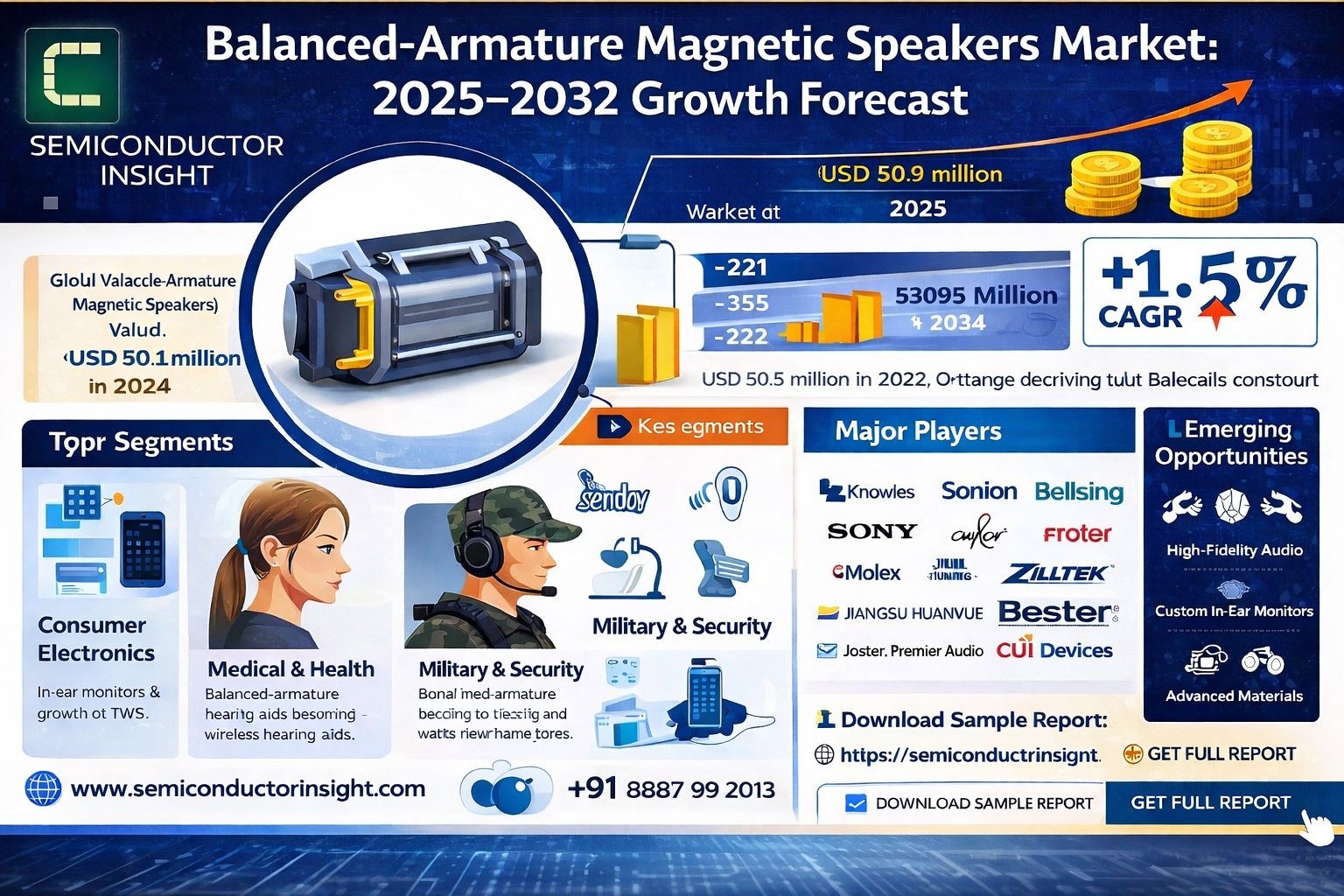 The market research report offers a comprehensive analysis of the global and regional Balanced-armature Magnetic Speakers markets from 2025-2032. It provides detailed segmentation, market size forecasts, competitive intelligence, technology trends, and an evaluation of key market dynamics, including drivers, restraints, and opportunities.