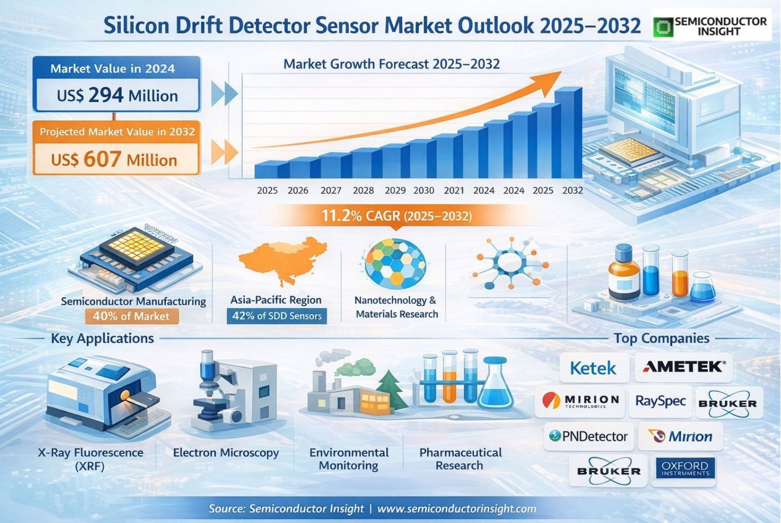 Global Silicon Drift Detector Sensor Market, valued at US$ 294 million in 2024, is poised for substantial expansion, projected to reach US$ 607 million by 2032. This growth trajectory, representing a compound annual growth rate (CAGR) of 11.2%, is detailed in a comprehensive new report published by Semiconductor Insight. The study underscores the indispensable role these high-precision detection devices play in enabling advanced analytical capabilities across semiconductor manufacturing, materials science, and industrial quality control.