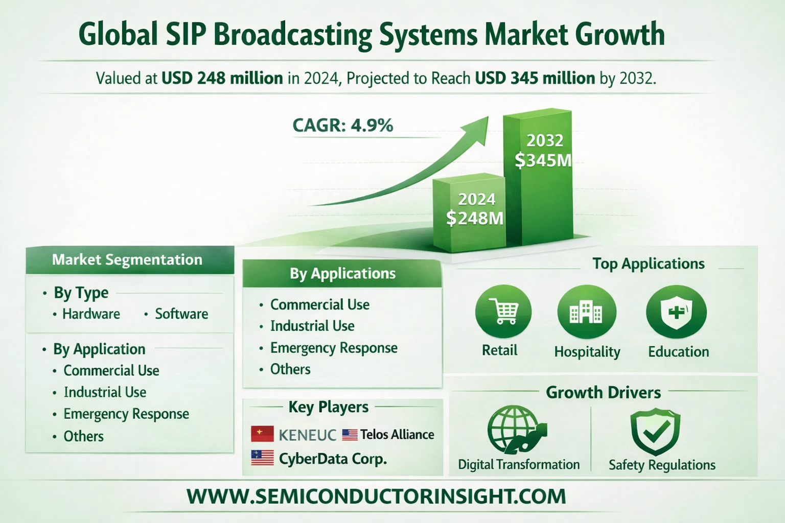 Global SIP Broadcasting Systems Market, valued at USD 248 million in 2024, is poised for steady growth, projected to reach USD 345 million by 2032. This expansion, representing a compound annual growth rate (CAGR) of 4.9%, is detailed in a comprehensive new report published by Semiconductor Insight. The study underscores the critical role of these IP-based audio communication solutions in modernizing public address and mass notification systems across various sectors.