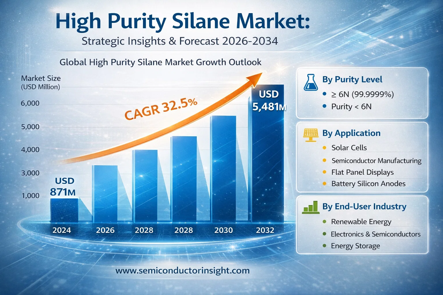 Global High Purity Silane Market, valued at USD 871 million in 2024, is poised for explosive growth, projected to reach USD 5,481 million by 2032. This remarkable expansion, driven by a compound annual growth rate (CAGR) of 32.5%, is detailed in a comprehensive new report published by Semiconductor Insight. The study underscores the indispensable role of this ultra-high-purity gas as a critical precursor material in next-generation technologies, particularly solar energy and advanced electronics.