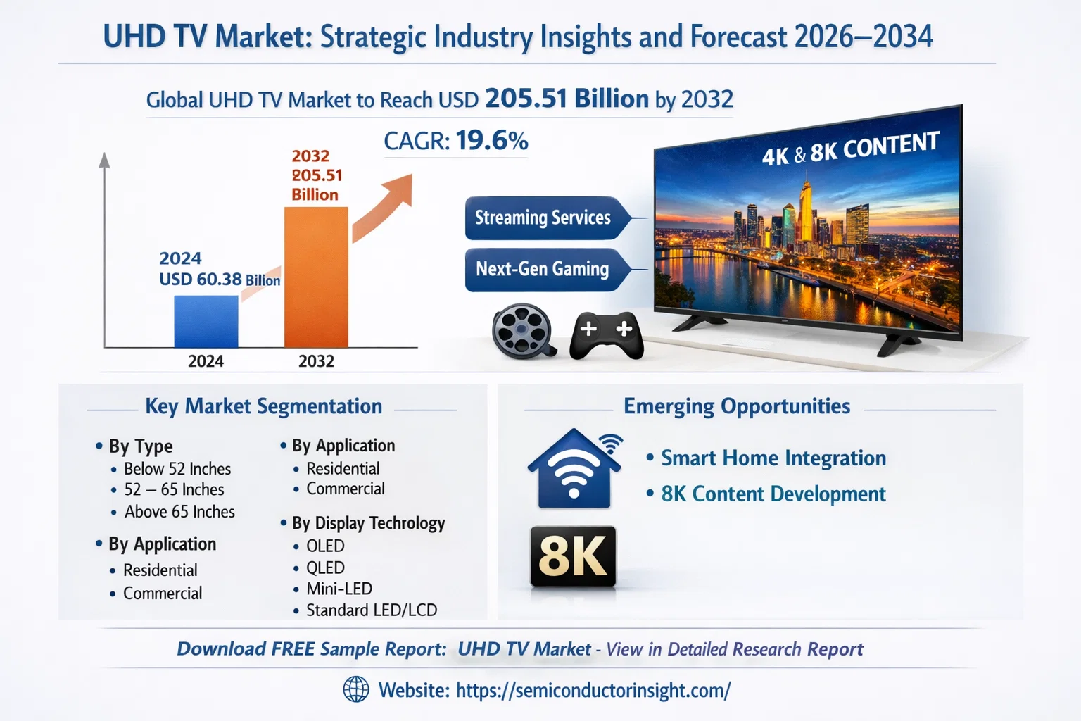 Global UHD TV Market, valued at a robust USD 60,380 million in 2024, is on a trajectory of significant expansion, projected to reach USD 205,510 million by 2032. This growth, representing a compound annual growth rate (CAGR) of 19.6%, is detailed in a comprehensive new report published by Semiconductor Insight. The study highlights the critical role of these advanced home entertainment devices in defining modern visual experiences across both consumer households and commercial enterprises.