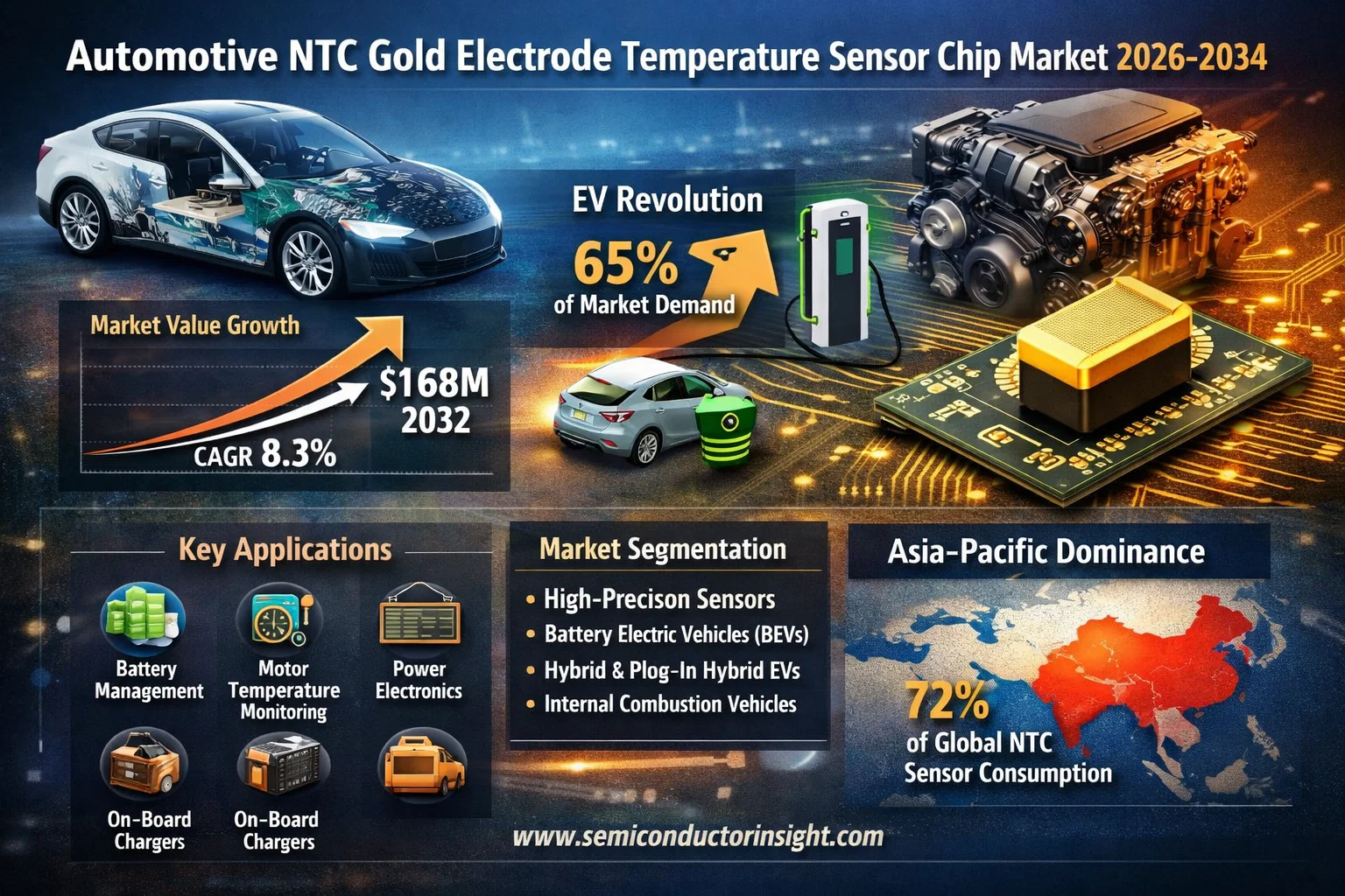Global Automotive NTC Gold Electrode Temperature Sensor Chip Market, valued at USD98 million in 2024, is poised for substantial growth, projected to reach USD168 million by 2032. This expansion, reflecting a compound annual growth rate (CAGR) of 8.3%, is detailed in a comprehensive new report published by Semiconductor Insight. The study underscores the critical role these precision components play in modern automotive thermal management systems, particularly in electric vehicles and advanced powertrains.