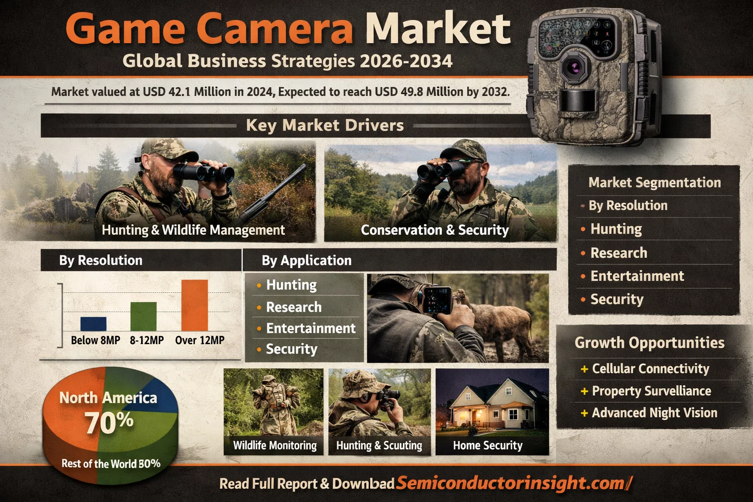 Market Segmentation: 8-12MP Cameras and Hunting Applications Dominate