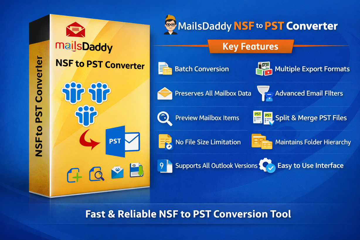 MailsDaddy NSF to PST Converter offers smart features for seamless nsf to pst conversion. It accurately converts NSF files into PST format while keeping the original structure and formatting intact.
