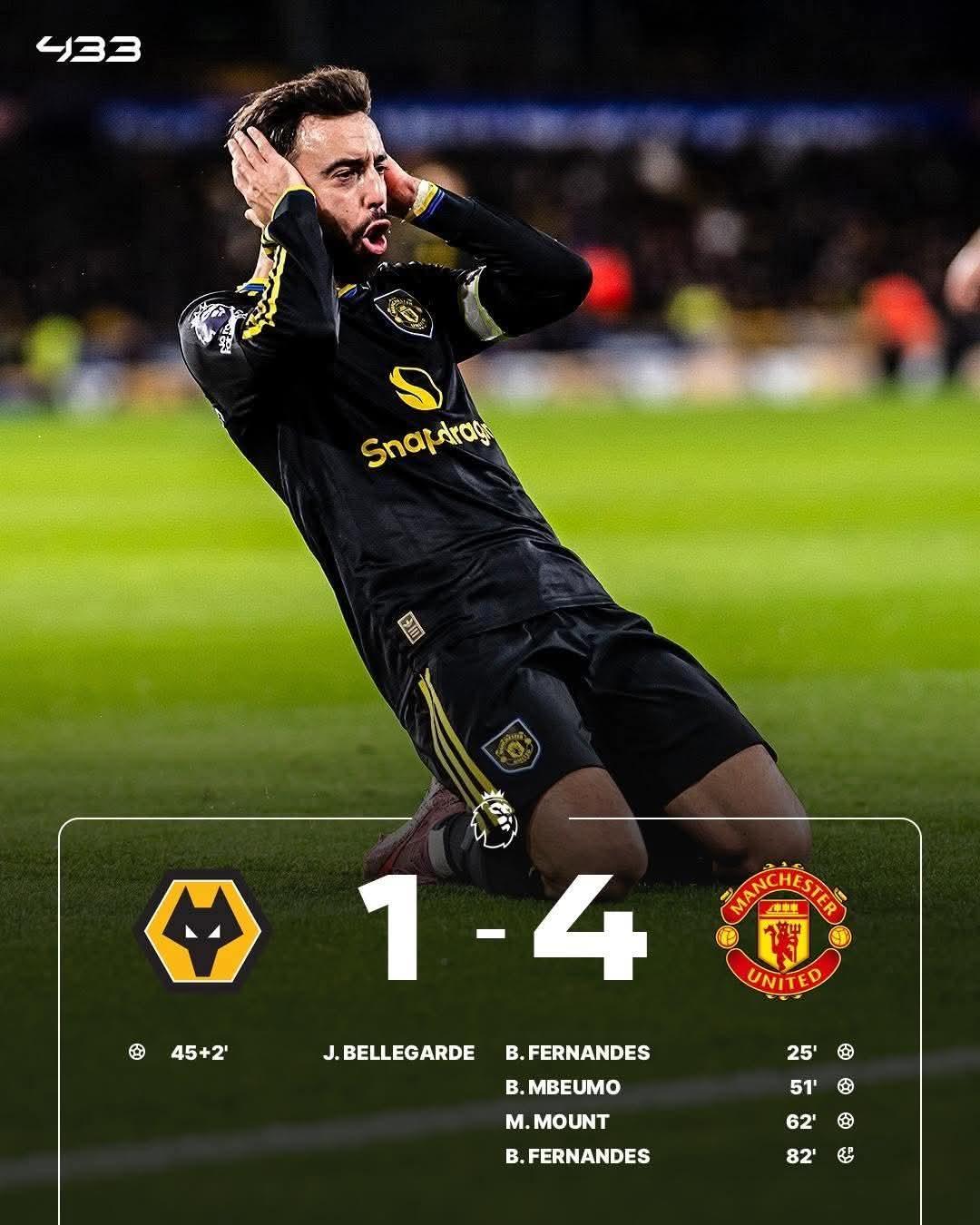 π€π¨ππ ππ’π¨ππ¨π₯ ! Manchester United πΜππ₯ππ¦π Wolverhampton 4-1 grâce à un grâce à π¨π‘ ππ’π¨πππΜ et π¨π‘π π£ππ¦π¦π ππΜπππ¦ππ©π de Bruno Fernandes !