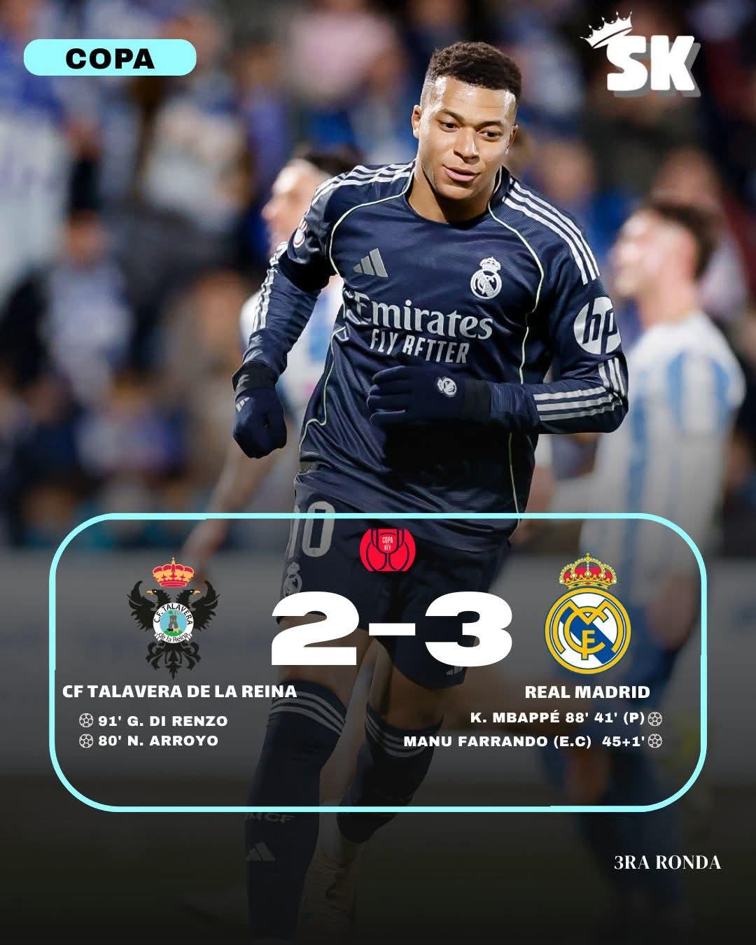 ✅️🇪🇸GANÓ EL REAL MADRID Y AVANZA EN LA COPA DEL REY El equipo de Xabi Alonso derrotó 2-3 al CF Talavera por la 3ra Ronda de la #CopadelRey. #futbol #realmadrid #mbappe #resultados #España #sportivo