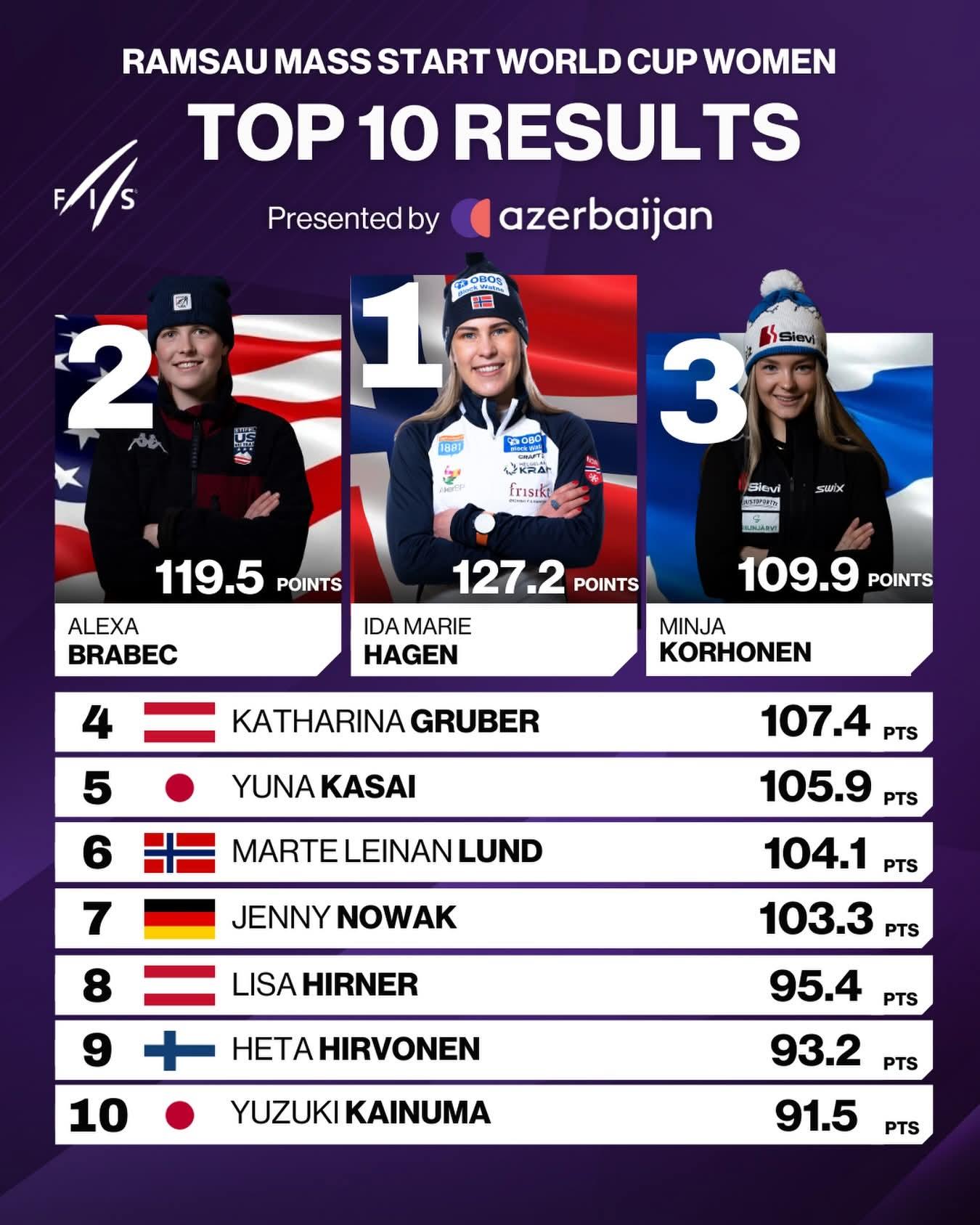 We proudly present the ten best ladies in today’s Mass Start event in Ramsau