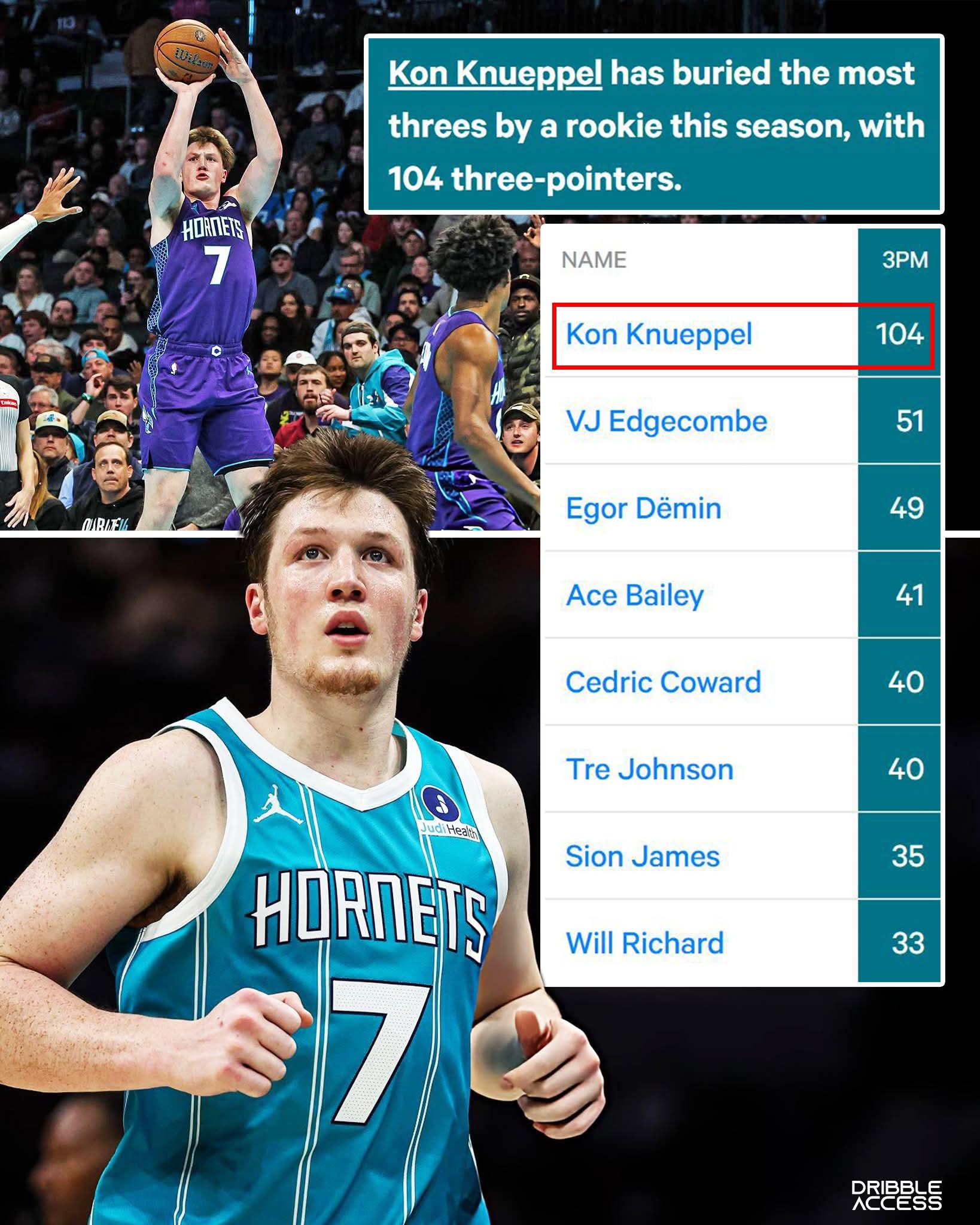 Kon Knueppel is leading the rookie class in 3PM this season and it’s not even close. He has more triples than the next two rookies on the list COMBINED!