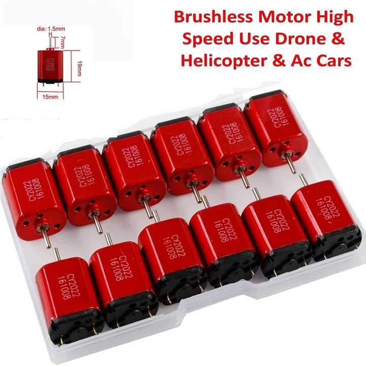 3V High Speed Mini DC Motor (45,000 RPM) for RC Cars, Mini Drones, Robotics & DIY Projects• Ultra High-Speed Performance (Up to 45,000 RPM):This powerful mini DC motor is designed to deliver extremely high rotational speed, reaching up to 45,000 revolutions per minute. The high-speed capability makes it ideal for applications that require rapid spinning movement such as RC vehicles, mini drones, robotic wheels, small turbines, and high-speed mechanical systems. This speed allows your projects to perform more efficiently and produce stronger motion compared to ordinary motors.• Low Voltage 3V DC Operation:The motor is specially engineered to operate on a low voltage 3V DC power supply. This makes it compatible with a wide range of power sources including AA batteries, rechargeable battery packs, lithium batteries, DC adapters, and small electronic power supplies. Because it works on low voltage, it is safe and convenient for educational projects and DIY experiments.• Compact Mini Motor Design:The small and compact size of this motor allows it to fit easily into miniature devices and tight spaces. This micro motor is perfect for applications where space is limited but high-speed performance is required. Its small footprint makes it suitable for micro robotics, small RC cars, drones, and tiny mechanical systems.• Lightweight Construction for Portable Devices:The motor is built with a lightweight design which makes it ideal for portable electronic devices and battery-powered systems. The reduced weight is especially important for mini drones and RC vehicles where maintaining a low overall weight improves performance and efficiency.• Durable Metal Shaft for Reliable Rotation:This motor features a strong and durable metal shaft that provides stable rotation and long-lasting performance. The shaft can easily connect to propellers, wheels, gears, fan blades, and other rotating components used in engineering models and mechanical systems.• Smooth and Stable Motor Operation:The internal motor components are designed to reduce friction and vibration, allowing the shaft to rotate smoothly and consistently. This smooth operation improves efficiency and ensures that the motor performs reliably in different types of projects.• Perfect for RC Cars and Remote Control Vehicles:This mini high-speed motor is commonly used in remote control cars and racing toy vehicles. When installed in RC cars, the motor provides strong wheel rotation that allows the vehicle to move quickly and smoothly. It is perfect for hobbyists who build or upgrade RC racing models.• Ideal for Mini Drones and Quadcopter Projects:Because of its lightweight structure and high rotational speed, the motor is suitable for mini drone propeller systems. It can spin propellers rapidly to generate the lift required for small aerial devices.• Excellent for Robotics and Automation Projects:Robotics enthusiasts can use this motor in various robotic systems including robotic vehicles, moving platforms, robotic arms, and automated machines. Its compact design and strong performance make it ideal for educational robotics kits and experimental automation systems.• Great for School Science Projects and STEM Learning:Students often use this type of motor in school science exhibitions and engineering demonstrations. It helps demonstrate key concepts such as electric motor function, mechanical rotation, energy conversion, and motion generation.• Versatile Use in DIY Engineering Projects:DIY creators and makers can use this motor for building different types of inventions and prototypes such as mini electric vehicles, rotating tools, automated gadgets, mechanical displays, and experimental machines.• Easy Electrical Connection:The motor includes simple connection terminals that allow easy wiring with batteries, switches, and circuit boards. Even beginners can quickly integrate it into their electronic circuits without complex setup.• Energy Efficient Performance:Despite its high-speed capability, the motor consumes relatively low power. This allows it to operate efficiently on battery-powered systems for longer durations.• Reliable Continuous Operation:The motor is designed to run smoothly for extended periods when supplied with the correct voltage. Its internal components are built to maintain consistent performance.• Strong Protective Outer Casing:The outer casing of the motor protects internal components from dust and minor damage. This durable housing increases the lifespan of the motor during repeated use.• Supports Mechanical Experiments:The motor can be used in various mechanical experiments such as spinning turbines, rotating mechanisms, small conveyor systems, and prototype machines.• Suitable for Electronic Toys and Gadgets:This motor is commonly used in electronic toys, motorized gadgets, and miniature mechanical devices where small size and high speed are required.• Easy Integration into Prototypes:Engineers and developers can easily integrate this motor into prototype designs for testing rotational mechanisms and mechanical power transmission systems.• Portable and Reusable Component:Because of its small size and simple wiring, the motor can easily be removed and reused in different projects and experiments.• Multipurpose Engineering Component:This high-speed micro motor is a versatile component that can be used in electronics, robotics, engineering prototypes, educational experiments, DIY inventions, and many other creative applications.• Perfect for Hobbyists, Students, and Engineers:Whether you are a student building a science project, a hobbyist designing RC vehicles, or an engineer testing mechanical prototypes, this mini DC motor provides powerful performance in a compact design.• Reliable High-Speed Motion for Small Machines:This motor delivers the fast rotational movement required for small machines and mechanical systems, making it a key component in many electronic and engineering designs.