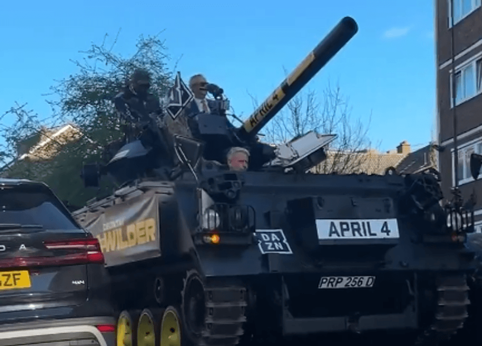 WWW.GBNEWS.COMDerek Chisora and Nigel Farage display Union Jacks aboard tank ahead of blockbuster Deontay Wilder clashDerek Chisora and Nigel Farage arrived at a boxing press conference on Thursday afternoon at the York Hall aboard a military tank.The heavyweight veteran was joined by the Reform UK leader for the eye-catching entrance ahead of his weekend showdown with Deontay Wilder.While fighters typically pull up in luxury cars and slip through back entrances, Chisora opted for something far more dramatic.The pair made their way through London Bridge to the venue, with Farage brandishing Union Jack flags from atop the tank.TRENDINGStoriesVideosYour SayChisora, who often goes by Del Boy, sported his signature Union Jack balaclava, with both men appearing to relish the spectacle.It comes after Chisora had pledged to arrange it during a recent conversation with the Reform leader.When Farage confirmed he would attend what he described as Chisora's "last professional fight," the boxer responded: "I might hire a tank and then you roll up in it."The politician, who has been a vocal supporter of the Zimbabwe-born fighter, replied: "Someone suggested this."Saturday's bout at the O2 Arena will mark the 50th professional contest for both fighters, though only Chisora has confirmed it will be his last.The 42-year-old Briton enters the ring with a record of 36 wins and 13 defeats, including 23 knockouts.His opponent, the 40-year-old former world champion from America, boasts an impressive 44-4-1 record, with 43 of those victories coming by knockout.While Chisora has declared this his retirement fight, many observers believe Wilder's career may also be on the line despite the American indicating he intends to continue regardless of the outcome.LATEST SPORT NEWSIpswich manages makes his feelings clear after Nigel Farage visit sparks furyTyson Furys condition revealed after father said relationship had been 'completely destroyed'Conor Benn explains turmoil after losing 'dream home' for boxing careerChisora was born in Zimbabwe and moved to Britain at 16. He has been an outspoken supporter of Farage and his party in recent years.When questioned about his friendship with the politician, the boxer slammed critics of Farage.He said: "You're always going to find people trying to fight for what's theirs."He added: "If people support Trump they're told, 'Oh, you're a racist.' Nigel's come up with his party and now it's, 'He was a racist.'"Everybody who's not with the left? You're racist."The former WBC heavyweight world champion and knockout machine will fight this Saturday, April 4, 2026.Our Standards: The GB News Editorial Charter0 Comments 0 Shares 56 Views 0 Reviews -