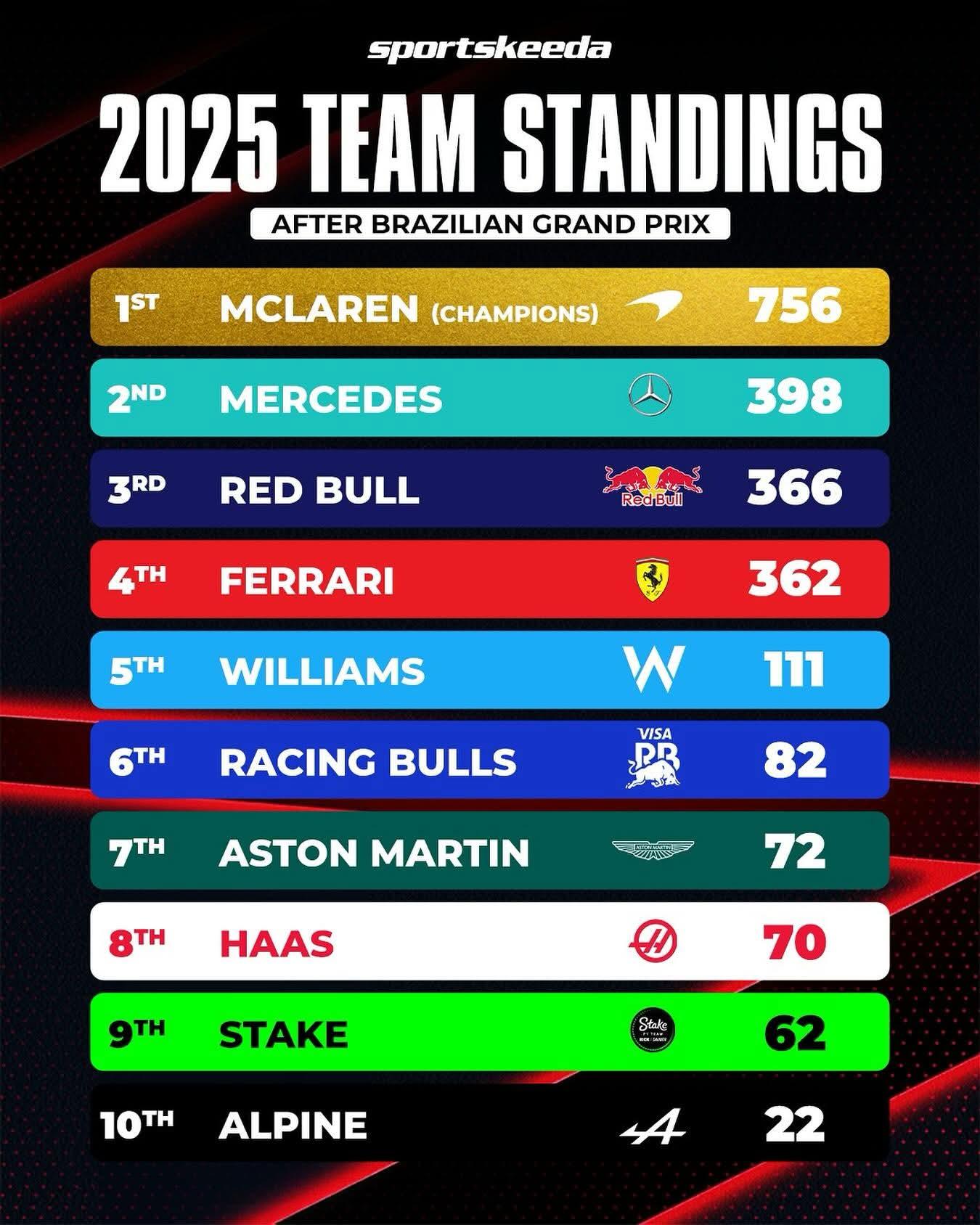 Red Bull pulls ahead of Ferrari after the Brazilian GP. 💪🏻Red Bull pulls ahead of Ferrari after the Brazilian GP. 💪🏻0 Commentarios 0 Acciones 43 Views 0 Vista previa