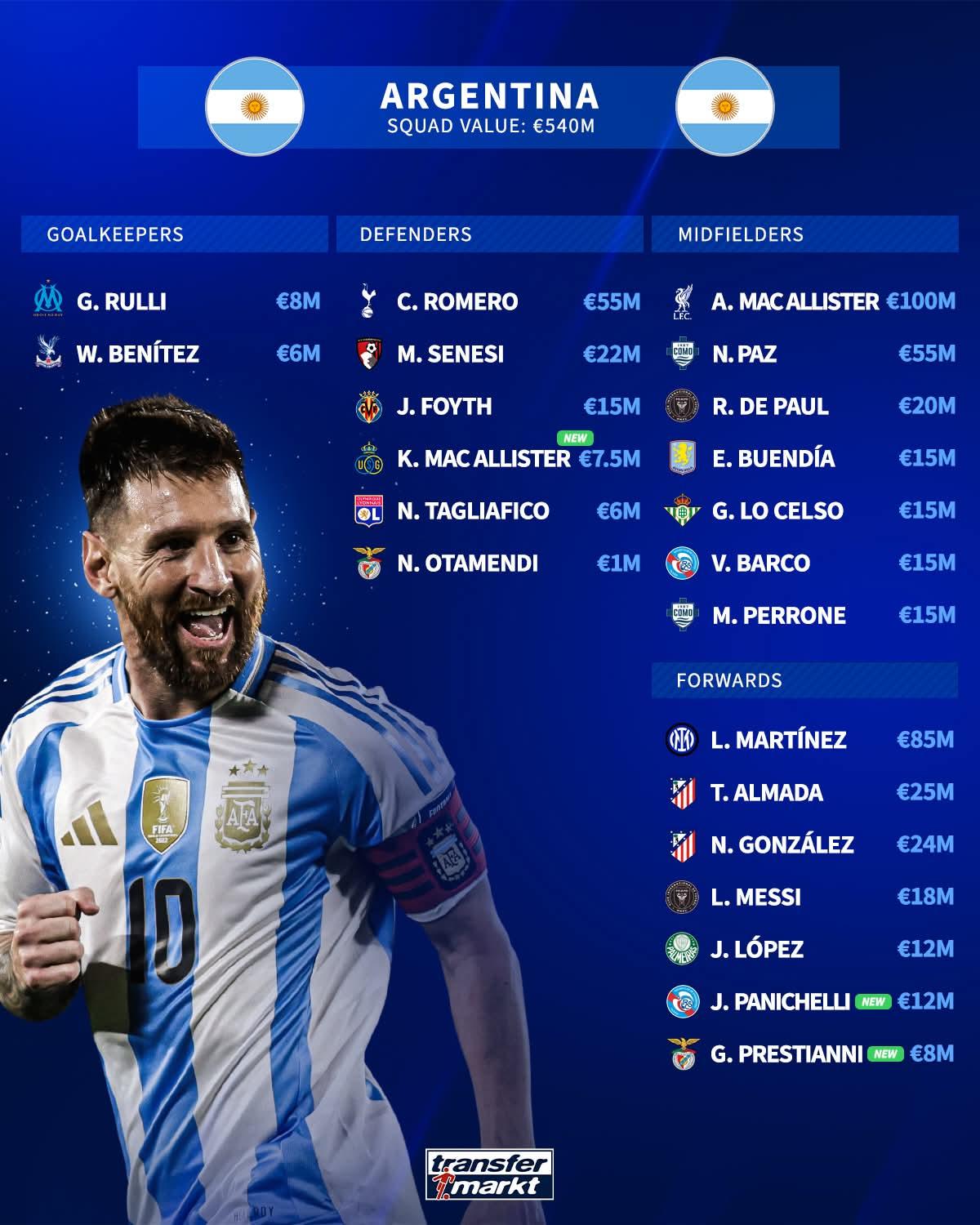 Messi, Lautaro, and Mac Allister lead a €540M squad ready for the 2026 challengeStill stacked with world champions and new talents π¦π·β¨ Messi, Lautaro, and Mac Allister lead a €540M squad ready for the 2026 challenge ππ0 Commenti 0 condivisioni 14 Views 0 Anteprima -