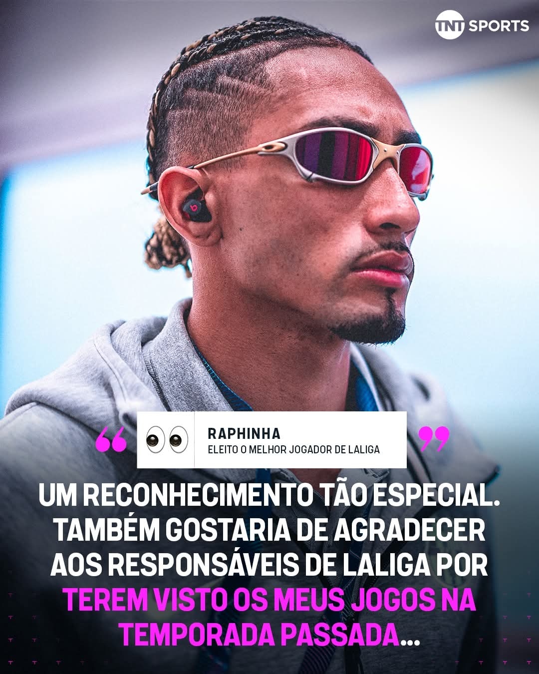 METEU AQUELA ALFINETADA? Raphinha foi eleito o MELHOR JOGADOR DE LALIGA na última temporada e mandou essa logo depois de vencer o prêmio! O craque brasileiro ficou fora do TOP 3 na Bola de Ouro e nem entrou no time ideal da FIFA no The Best...