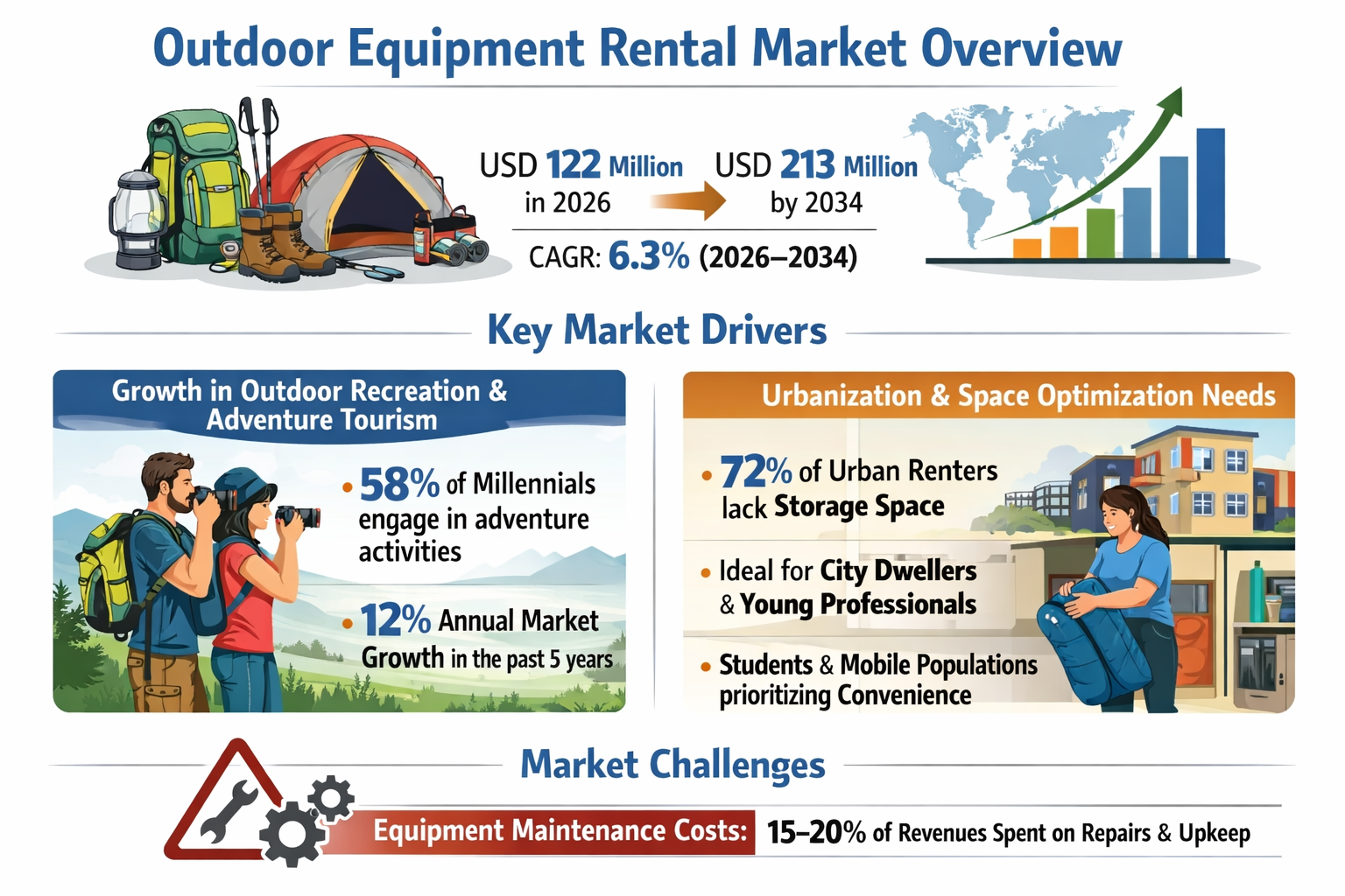 Can Rising Outdoor Recreation Trends Sustain a 6.3% CAGR in the Outdoor Equipment Rental Market Through 2034? According to a new report from Intel Market Research, the global Outdoor Equipment Rental market was valued at USD 122 million in 2026 and is projected to reach USD 213 million by 2034, growing at a CAGR of 6.3% during the forecast period (2026–2034). This growth is fueled by increasing participation in outdoor activities, urbanization trends, and the rising popularity of sharing economy models. https://www.intelmarketresearch.com/download-free-sample/25614/outdoor-equipment-rental-market