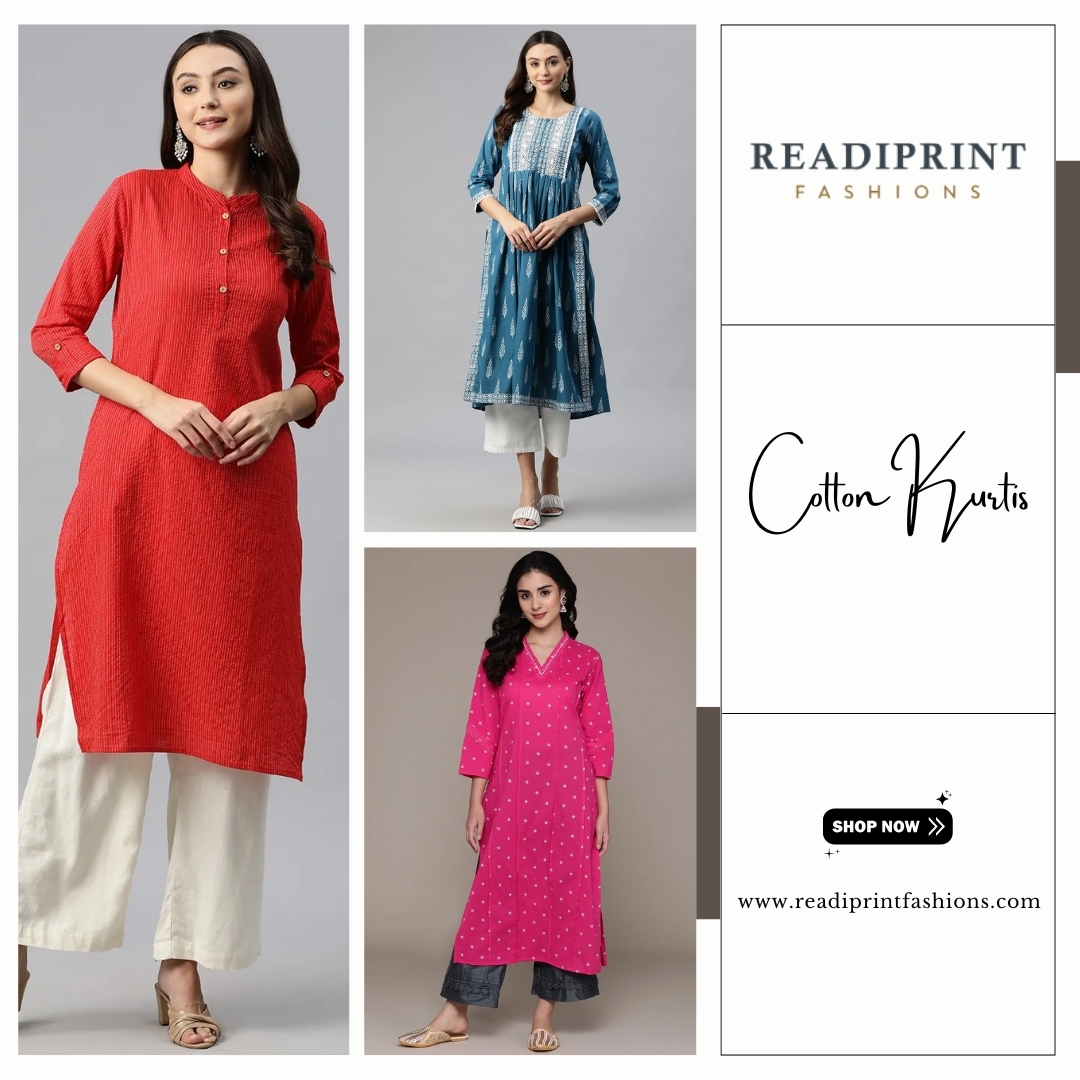 Step into effortless style with Cotton Kurtis that perfectly blend comfort and fashion. Ideal for everyday wear, these kurtis offer breathable fabrics, versatile designs, and elegant patterns that suit casual outings or office wear. With soft textures and flattering fits, Cotton Kurtis make staying comfortable while looking stylish easier than ever. Visit Now - https://www.readiprintfashions.com/kurti/cotton