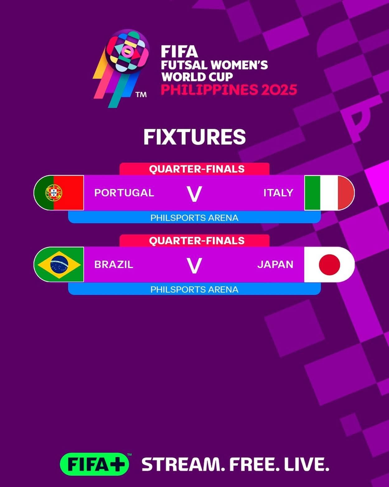 Two clashes ahead and the Semi-Final lineup is taking shape… 👀🔥 Stream the first-ever #FutsalWWC LIVE & FREE on FIFA+ https://f.plus/FIFAFWWCPhilippinesFB *Territorial restrictions apply #sportivo