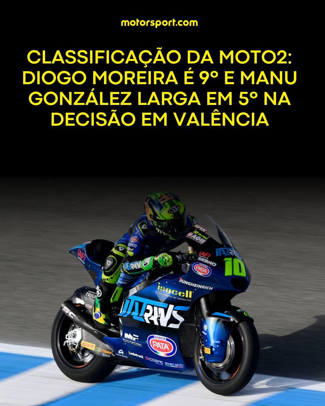 A Moto2 realizou neste sábado a classificação para a grande final da temporada 2025, no GP de Valência. Após uma sexta abaixo do esperado, Diogo Moreira se recuperou e terminou em 9º no quali, enquanto seu rival, Manu González, foi o quinto.