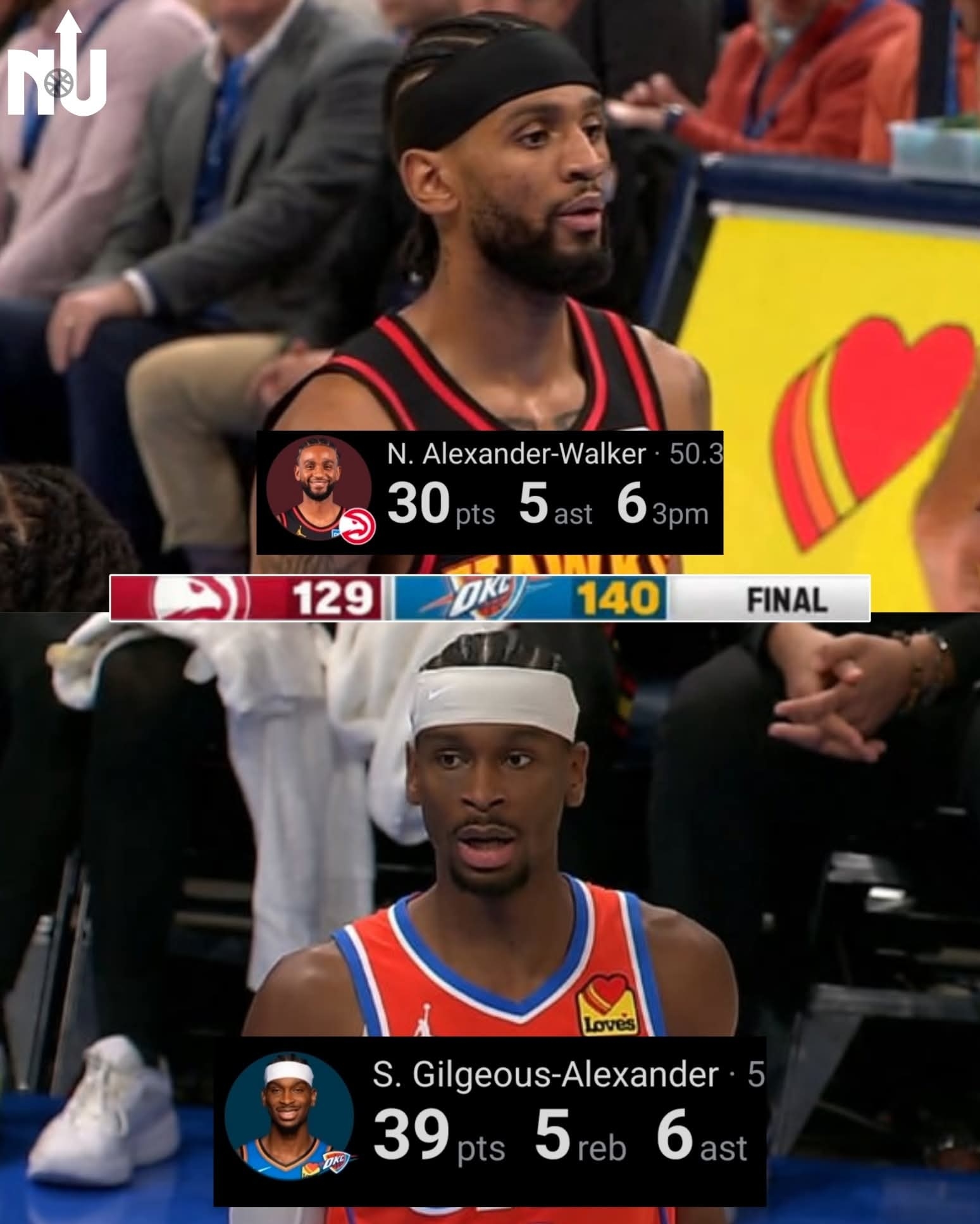 Shai Gilgeous-Alexander poured in 39 PTS while his cousin Nickeil Alexander-Walker scored 30 with OKC coming out on top, 140-129!