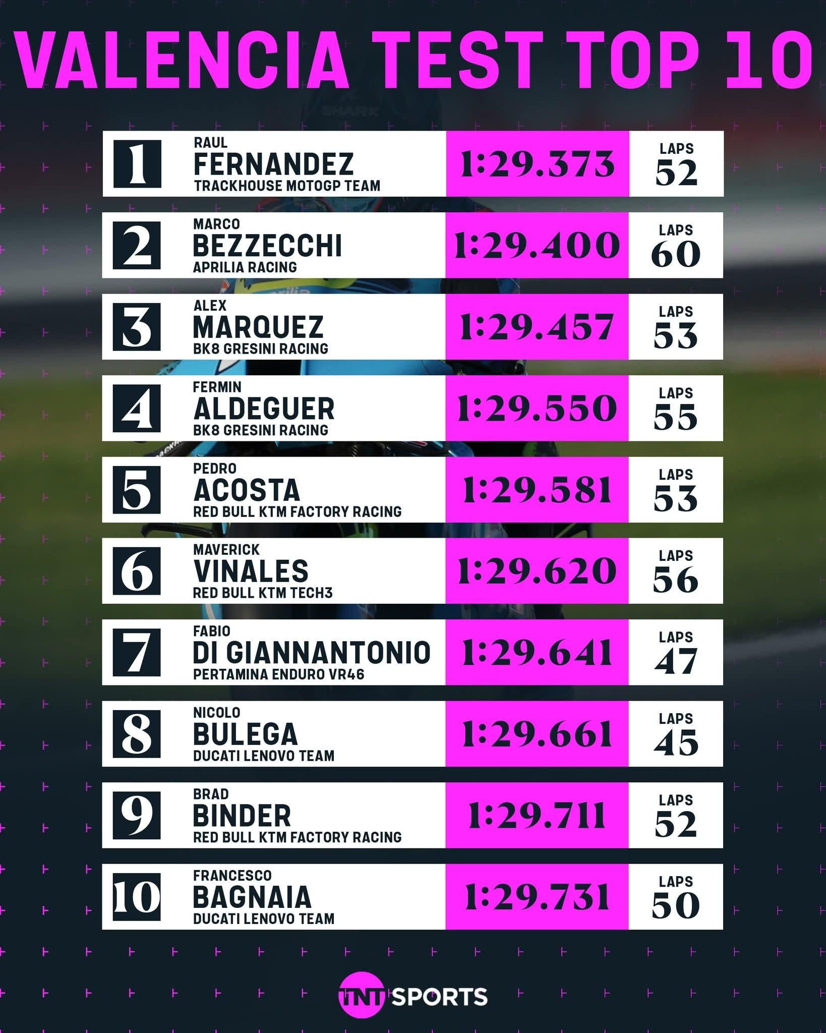 Here are the top 10 riders at the #ValenciaTest 🙌