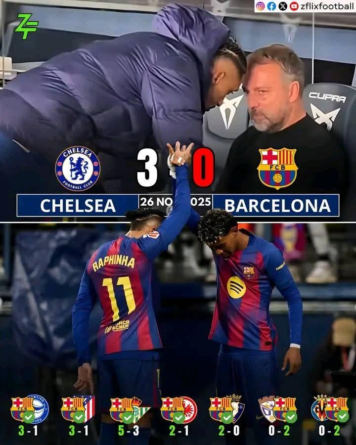 🚨 After the defeat against Chelsea, Flick said: 🗣️ “You will see another Barça. I promise you.” ✅ Barça 3-1 Alavés ✅ Barça 3-1 Atlético Madrid ✅ Barça 5-3 Real Betis ✅ Barça 2-1 Frankfurt ✅ Barça 2-0 Osasuna ✅ Barça 2-0 C.D. Guadalajara ✅ Barça 2-0 Villarreal He promised and he delivered it. 📝 — #Chelsea #HansiFlick #Barça #flarefootball #zflixfootball ... #sportivo