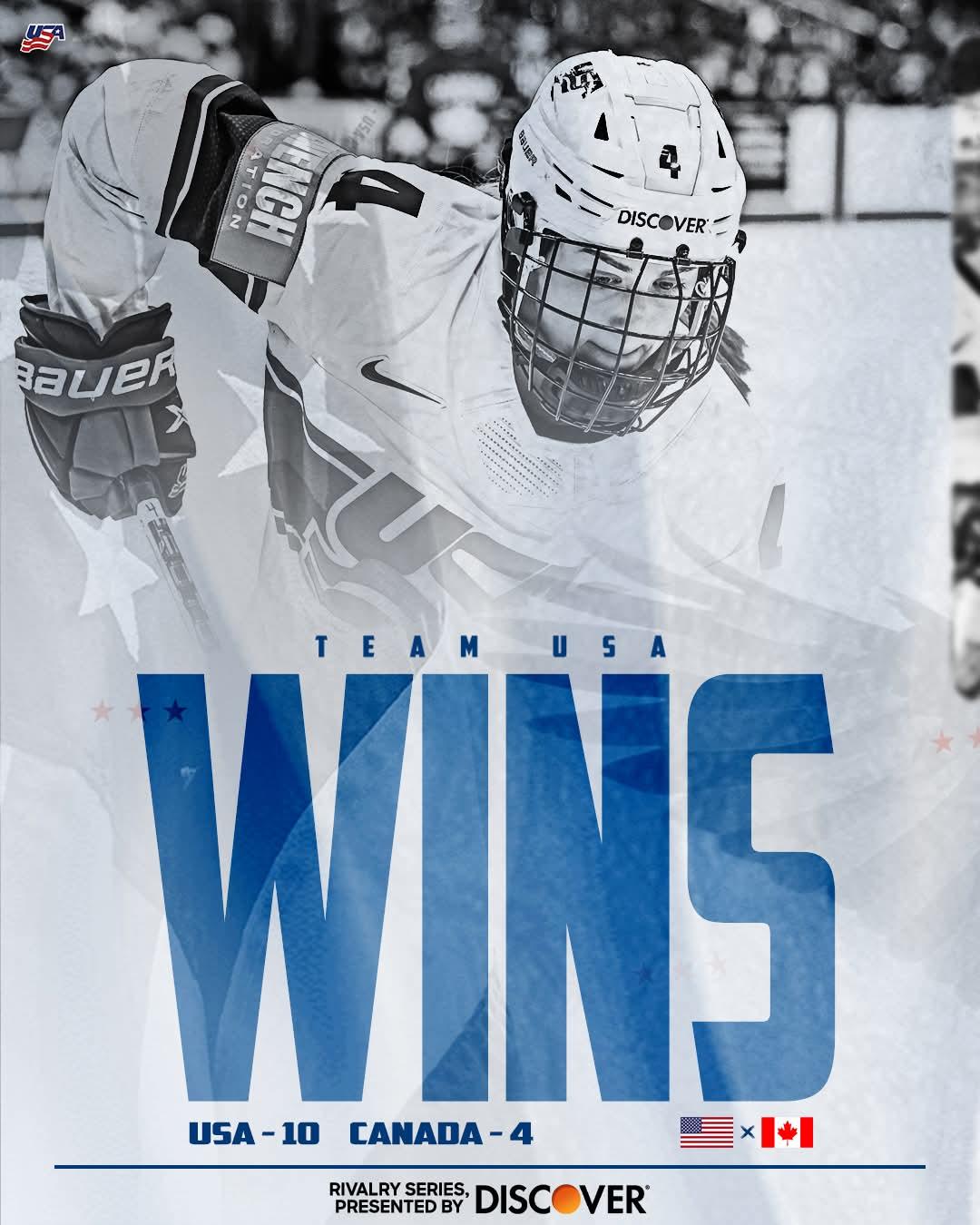 CHALK UP ANOTHER DUB ✅ Team USA takes game three with 1️⃣5️⃣ players tallying a point in the 10-4 win over Canada! #RivalrySeries, presented by @Discover. #sportivo