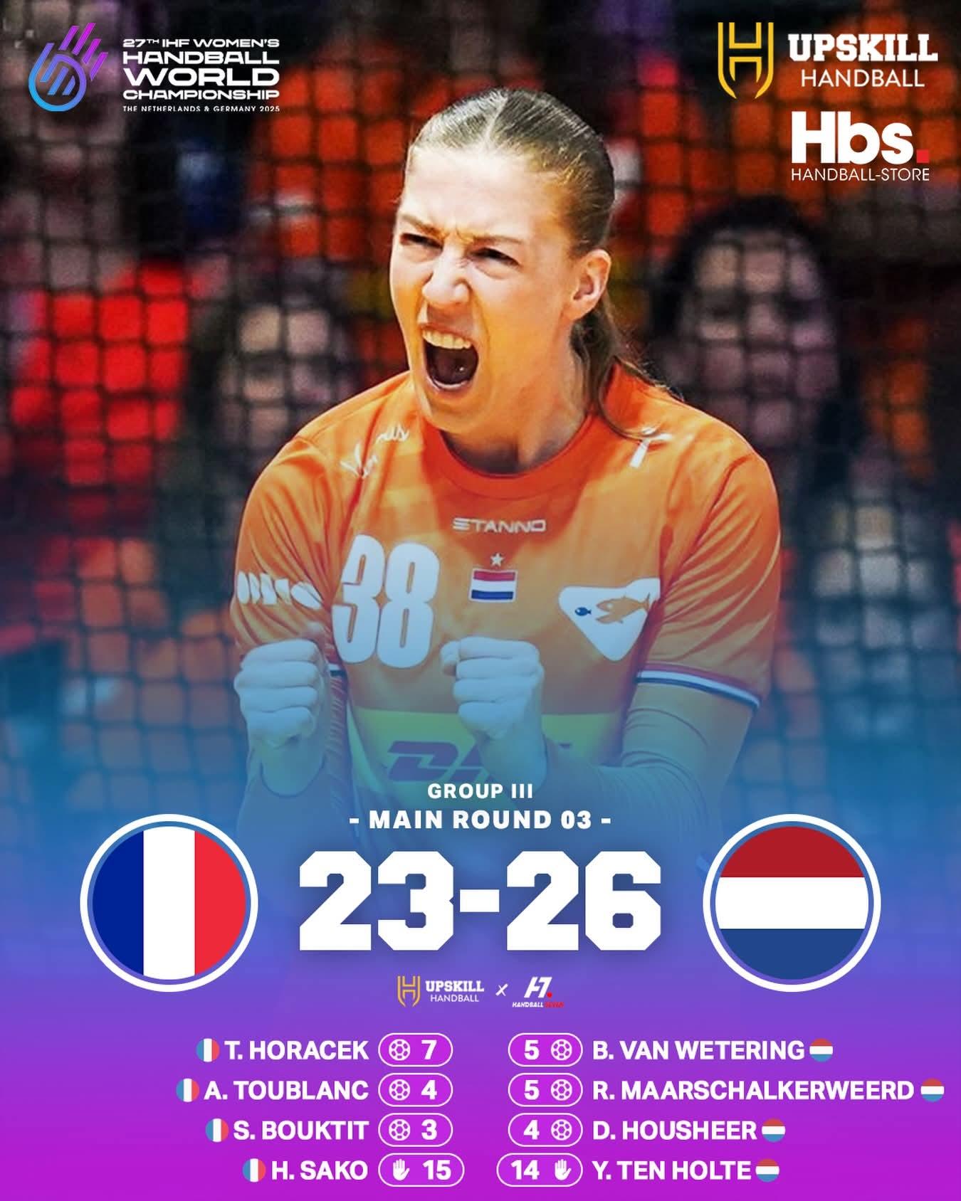 • #IHF2025 France is defeated by the Netherlands and will now face Denmark in the quarter-finals.