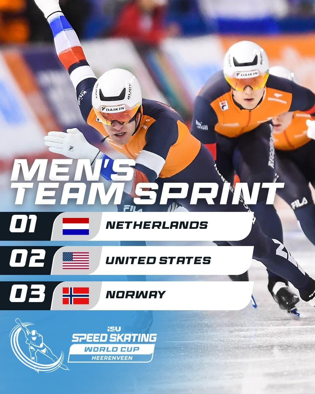 • First team sprint of the season, and the Netherlands takes the win on home ice! #SpeedSkating