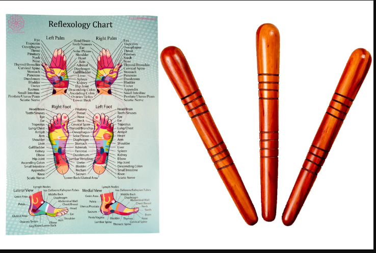 • Versatile Wooden Manual Massage Tool Sets for professionals with ENGLISH Reflexology Charts Neu