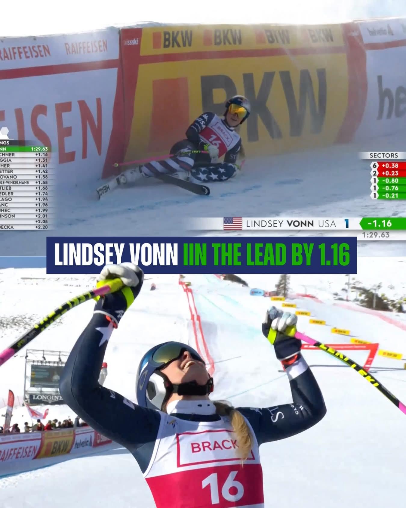 LINDSEY IS THE NEW LEADER !!! What a run! 😳😳 Live results 👉🏼 fis-app.com 📲 #FISAlpine #WorldCupStMoritz #sportivo